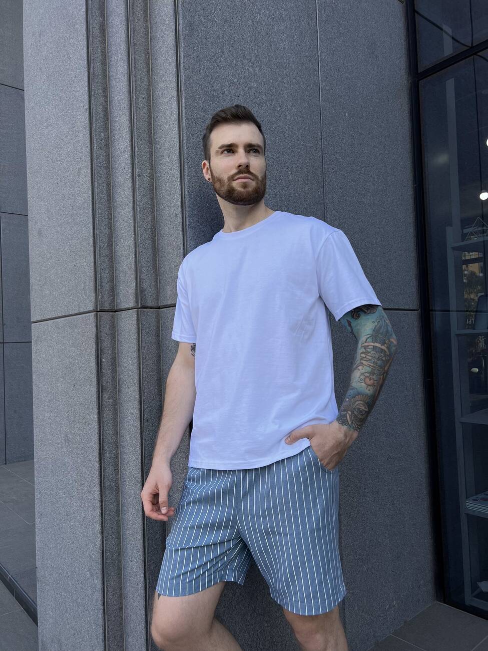 Костюм чоловічий літній лляний Cosy сіро-блакитний. Чоловічий костюм зі шортів та футболки ідеально підійдуть для літнього сезону. Матеріал гігроскопічний, гіпоалергенний, повітропроникний. Тканина тактильно м'яка і приємна на дотик, що не сильно змінюється за рахунок змішаного складу з бавовною.