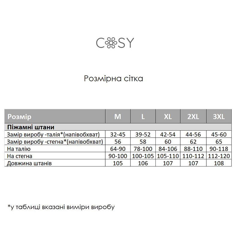 - штани - фланель (70% бавовна, 30% поліестер), виробництво тканини - Туреччина