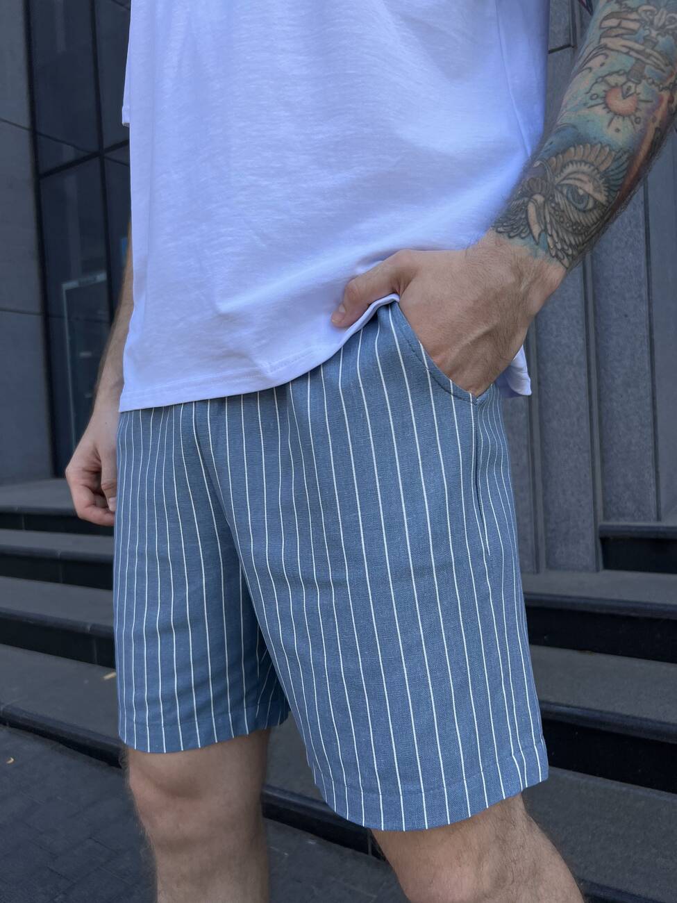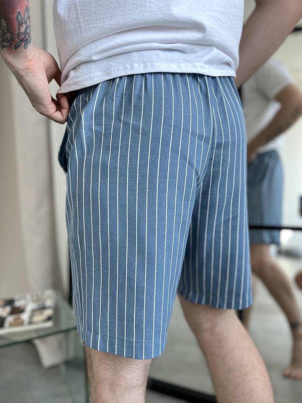 Шорти чоловічі лляні Cosy літні сіро-блакитні. Шорти ідеально підійдуть для літнього сезону. Матеріал гігроскопічний, гіпоалергенний, повітропроникний. Тканина тактильно м'яка і приємна на дотик, не сильно меніться за рахунок змішаного складу з бавовною.