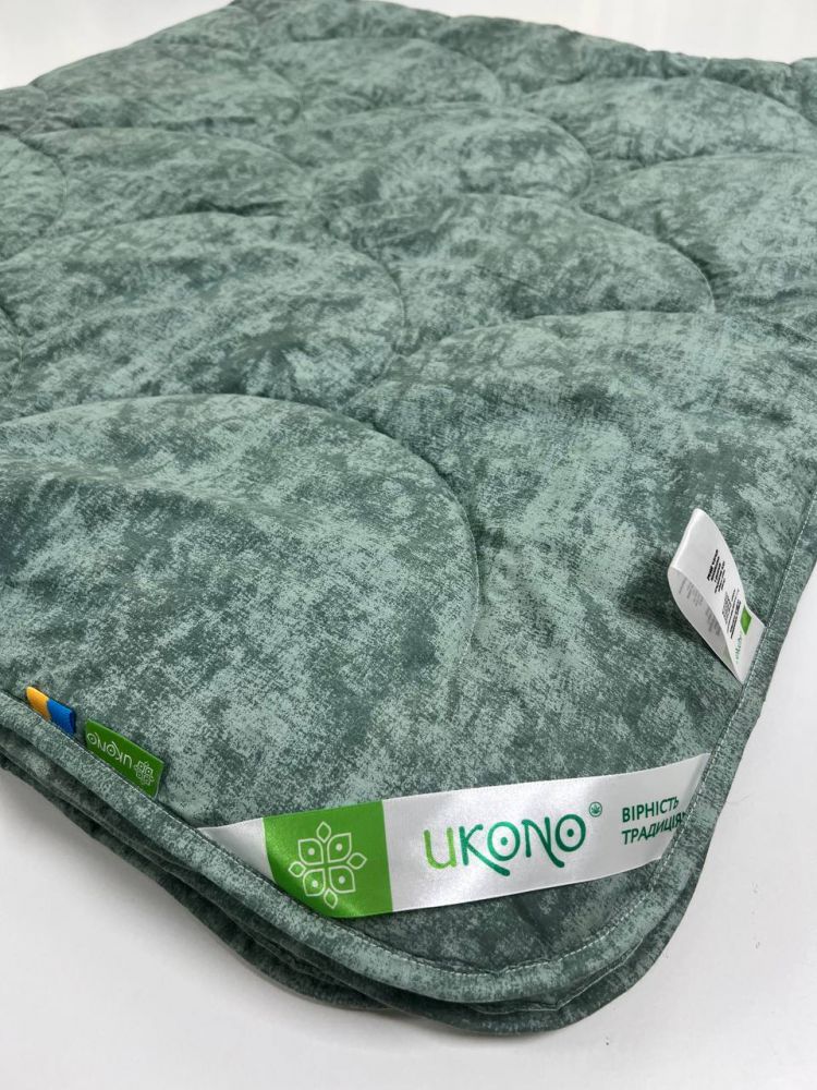 Ковдра конопляна демісезонна Малахіт Climate control Ukono. Затишна, натуральна і м'яка стьобана ковдра для періоду міжсезоння. Ковдра гіпоалергенна, гігієнічна, міцна і довговічна. Повністю екологічна з бавовняного сатину і конопляного наповнювача. Наповнювач однорідний, рівномірно розділений по всьому периметру ковдри, не збивається. Конопляне волокно ідеально підтримує природний тепловий і водний баланс тіла. Під такою ковдрою комфортно незалежно від сезону, під нею не холодно і не жарко. Наповнювач з конопляних волокон має неймовірні властивості - не накопичує пил і підходить для алергіків, а також для найменших дітей. Конопляне волокно має антисептичні властивості, не боїться бактерій, цвілі та грибка. UKONO - українська компанія, яка займається продажем подушок, ковдр та інших виробів з конопляних матеріалів. Протягом 2-х років команда компанії удосконалювала якість подушок та ковдр, провела понад 200 різноманітних досліджень та тестувань нової форми та ідеального складу виробів, та з радістю презентує вам оновлені моделі зручних та компактних подушок, ковдр, топерів із вмістом конопляного волокна! Виробництво знаходиться в місті Суми і виконується з конопляних матеріалів, вирощених на території України.