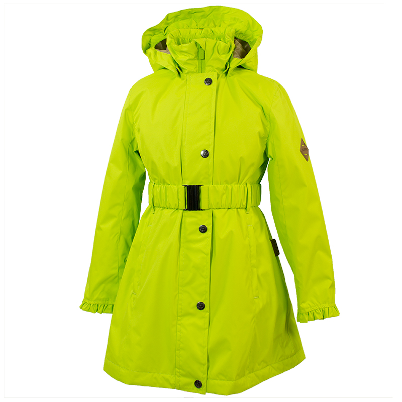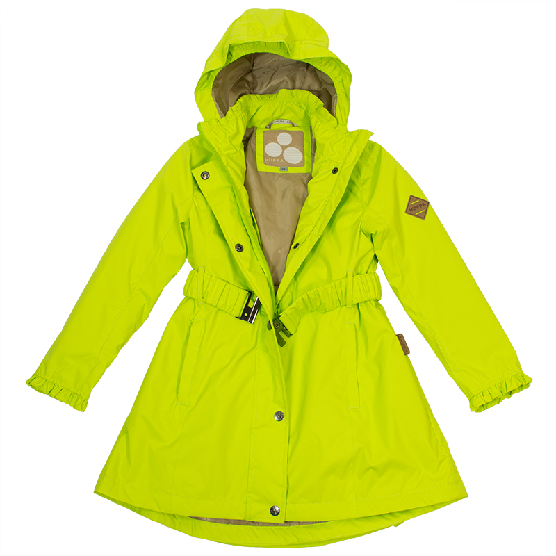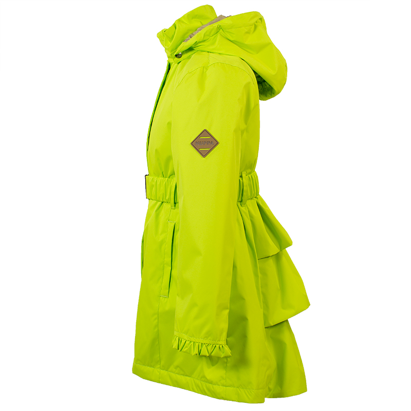 Пальто для дівчаток LEANDRA Huppa 18030004 Лайм - мрія кожної модниці. Плащ – пальто має вишукану конструкцію та святковий зовнішній вигляд за рахунок додаткових елементів декору – рюш. Закривається на блискавку. Має подвійні планки з мембранної тканини вздовж усієї блискавки: верхню – закривається на кнопки, та внутрішню для додаткового захисту. Задня частина низу подовжена, має 3 елегантні рюші, що надають вишуканості та святковості. На талії еластичний пояс на резинці із металевою застібкою. Дві бічні кишені. Кишені на блискавці. І внутрішня кишеня на блискавці. Комірець стійка. Капюшон знімається (на кнопках). Капюшон із гумкою. Манжети рукавів із рюшами. Рукави мають усередині на нижній частині основну мембранну тканину, що дозволяє при необхідності їх повертати, при цьому не тільки не втрачається охайність зовнішнього вигляду, а навпаки створюється новий стильний дизайн манжету. Усі шви з додатковою обробкою. Додано світловідбивні елементи з високими показниками стандартів безпеки CE EN 13356, EN ISO 20471, що дозволяє бути помітним у темний та похмурий період часу. Має водо та брудовідштовхувальне покриття BIONIC-FINISH. Комфортне, модне, стильне, ідеально «сидить по фігурі», зручне в експлуатації, вітронепроникне, має високу зносостійкість, добре утримує тепло всередині, виводить надлишкові пари назовні, "дихає", створює для кожного свій індивідуальний мікроклімат, гіпоалергенне, легке, просте в догляді, підходить для щоденного використання на вулиці за температурного режиму від +10 градусів Цельсія до 0.