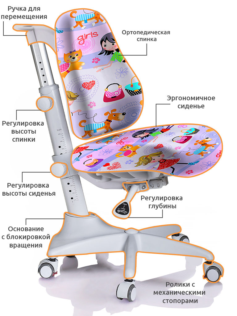 Крісло Mealux Match GL grey base Y-528 GL. Ергономічне крісло Mealux Match виготовлене із високоякісних матеріалів. Спинка ортопедичної форми повторює вигин хребта. Поперековий знижує навантаження на хребет, тим самим зберігаючи поставу дитини, а також сприяє підвищенню посидючості. Незалежне регулювання спинки та сидіння. Висота крісла регулюється в діапазоні 36-58 см. Також регулюється глибина сидіння в діапазоні 30-45 см. Завдяки такому широкому діапазону регулювання крісло відмінно підходить і учню початкової школи, і старшокласнику. Спеціальний важіль для налаштування глибини сидіння. Дане крісло універсальне та підходить як для столів з регулюванням висоти, так і для звичайних письмових столів. Підстава крісла не має функції обертання (бажано для дитячих крісел). Форма основи стійка і не перекидається. Коліщатка можуть автоматично блокуватися при вазі від 20 кг. Максимальне навантаження – до 100 кг. Зручна ручка для легкого та плавного руху крісла по кімнаті.