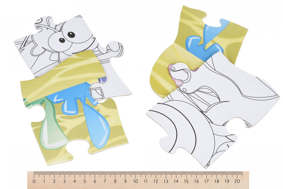 Пазл-розмальовка Same Toy Підводний світ 2036Ut - іграшка 2 в 1: одночасно пазл і розфарбування. Пазл складається з 50 фрагментів з яскравим зображенням на лицьовій стороні. На звороті - те ж зображення, тільки чорно-біле. Фрагменти пазла виготовлені з щільного картону, вони не гнуться, а на дотик гладкі. зібравши пазл, дитина може перевернути його на «чорно-білу» сторону і розфарбувати. Для цього в наборі 4 кольорові воскові олівці. Збираючи пазл, діти будуть розвивати дрібну моторику, координацію і спритність рухів, а шукаючи необхідне місце для вкладиша, пам'ять і логічне мислення.