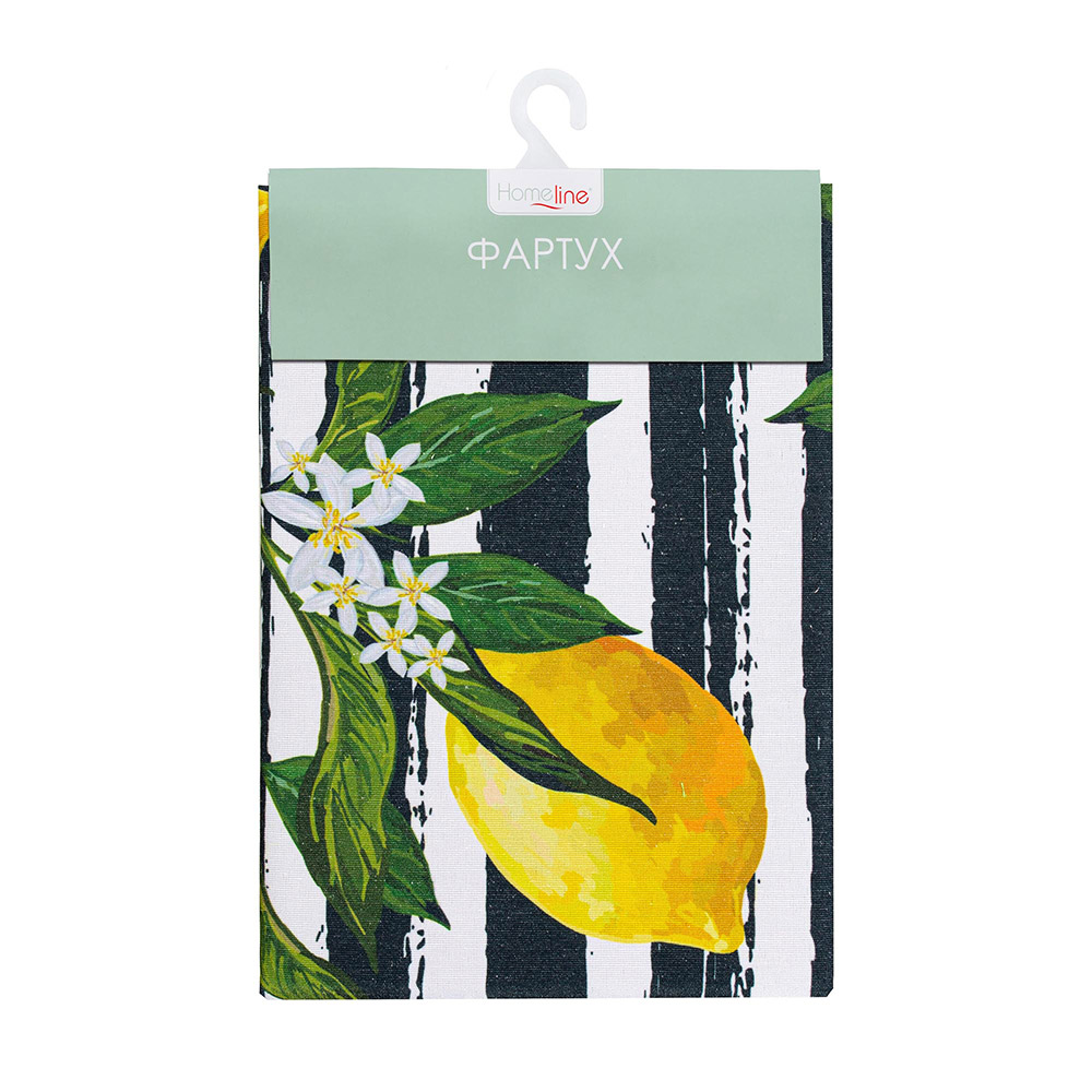 Кухонний фартух у зелено-жовтій гамі із симпатичним принтом (лимони, смужки). Фартух стане незамінним на кухні, захистить ваш одяг під час процесу приготування їжі. Фартух виконаний з якісної тканини на основі поліестеру. Матеріал практичний, не вимагає особливого догляду, міцний, надовго зберігає привабливий зовнішній вигляд. Розмір універсальний, легко регулюється за допомогою зав'язок, дозволяючи підігнати фартух під будь-яку фігуру.