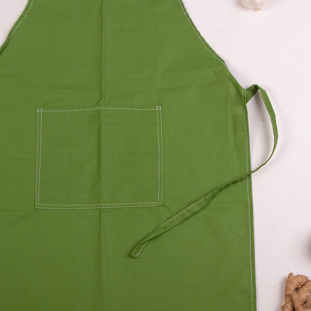 Кухонний однотонний фартух зеленого кольору з великою зручною кишенею. Фартух чудово впишеться в кухонний інтер'єр, захистить ваш одяг під час процесу приготування їжі.
