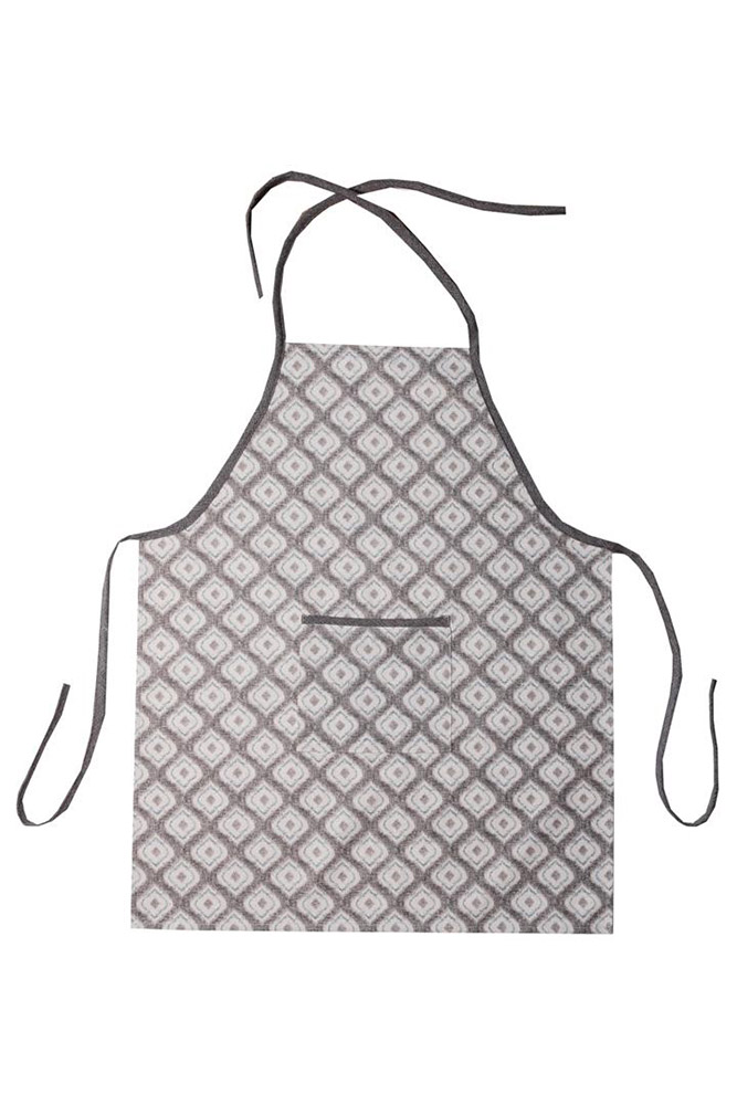 Кухонний фартух із колекції "Фраппе". Модель сірих відтінків з красивим візерунком і зі зручною кишенею. Фартух стане незамінним на кухні, захистить ваш одяг під час процесу приготування їжі. Фартух виконаний з бавовняної тканини з додаванням поліестеру. Матеріал приємний на дотик, практичний, не потребує особливого догляду, міцний, надовго зберігає привабливий зовнішній вигляд. Розмір легко регулюється за допомогою зав'язок, дозволяючи підігнати фартух під будь-яку фігуру.