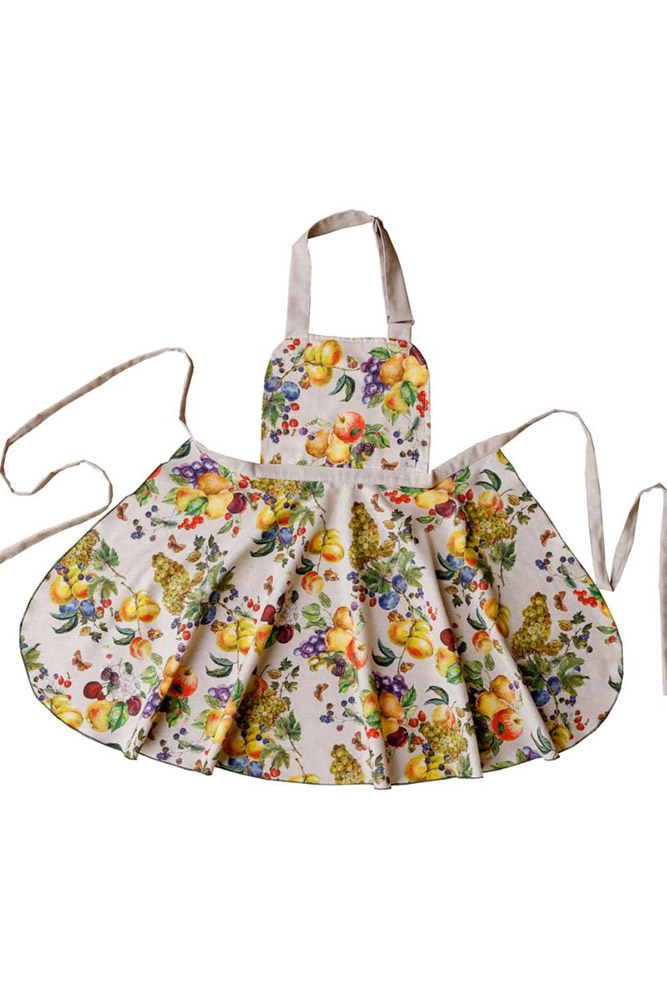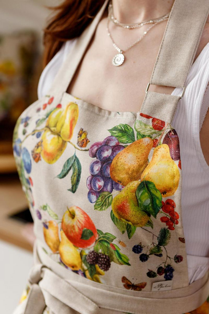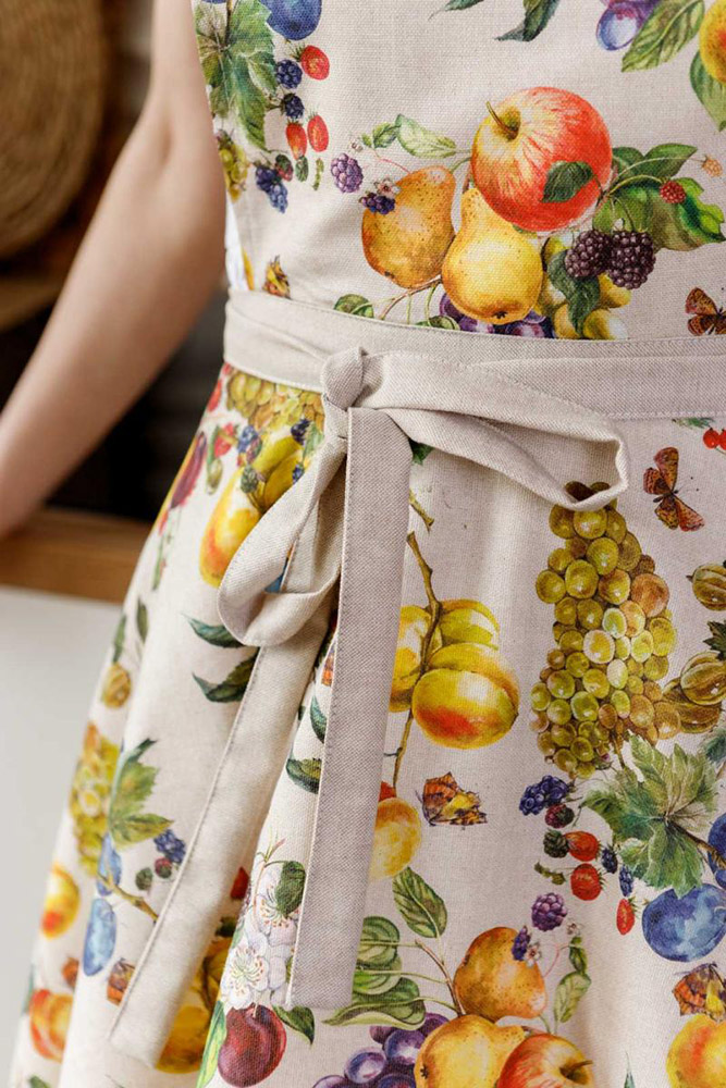Кухонний фартух із яскравим різнобарвним принтом із фруктами та ягодами. Фартух стане незамінним на кухні, захистить ваш одяг під час процесу приготування їжі. Фартух виготовлений із якісної бавовняної тканини. Матеріал приємний на дотик, практичний, не потребує особливого догляду, міцний, надовго зберігає привабливий зовнішній вигляд. Розмір легко регулюється за допомогою зав'язок, даючи змогу підігнати фартух під будь-яку фігуру.