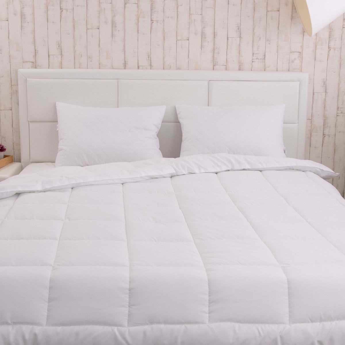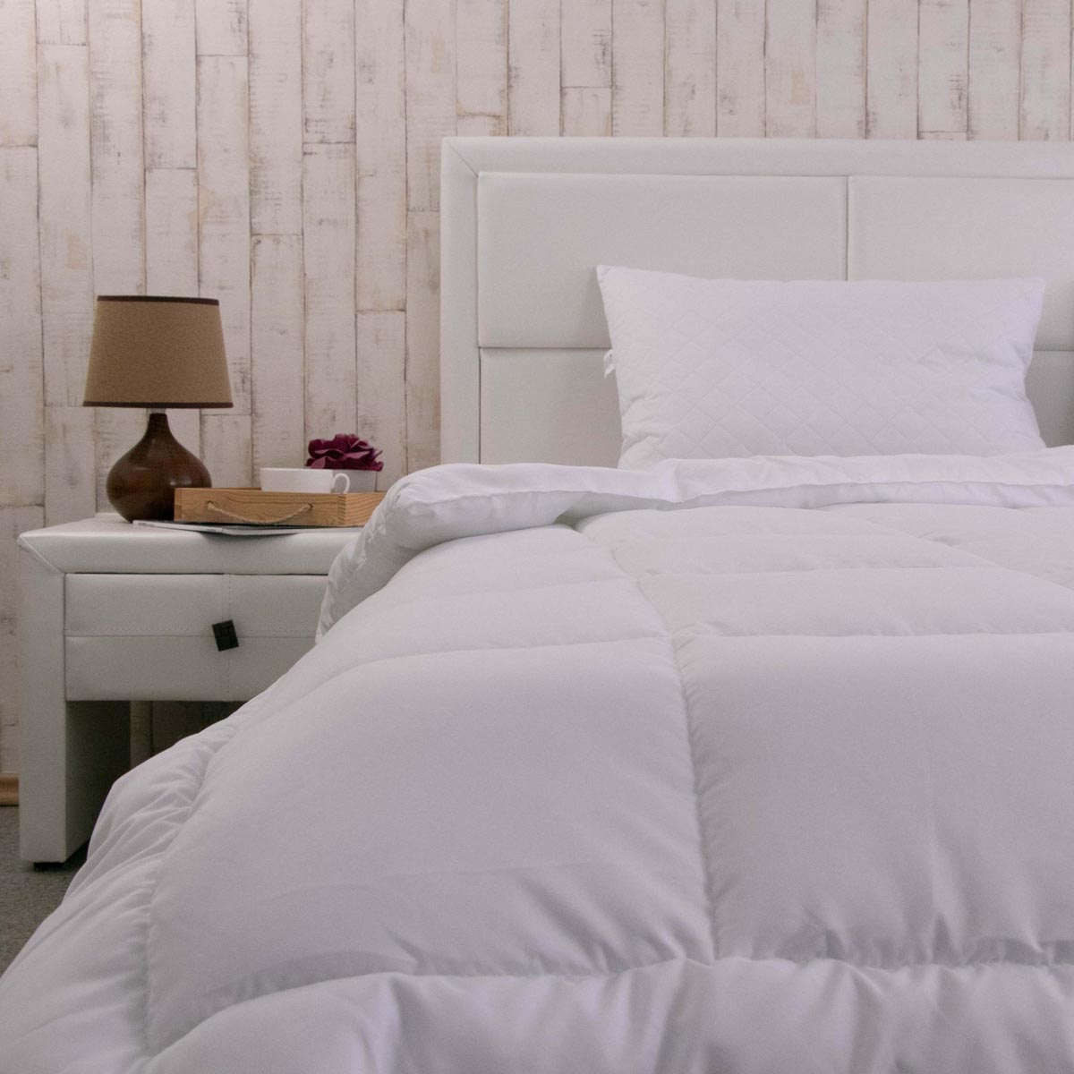 Набір антиалергенний White collection Руно полуторний. У комплект входить м'яка подушка та тепла ковдра в чохлі з мікрофібри з кантом. Легкий наповнювач із силіконізованого волокна відмінно пропускає повітря, не ширяє і приємно зігріває. Наповнювач антиалергенний, тому чудово підійде для людей, схильних до алергії на натуральні наповнювачі.