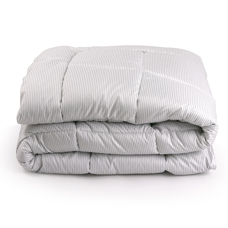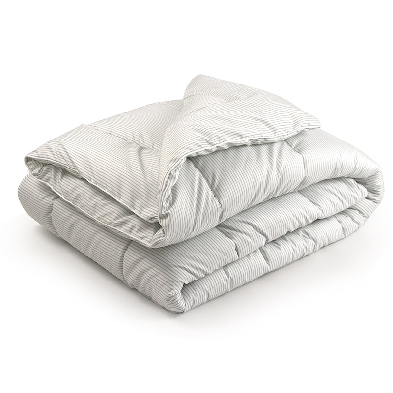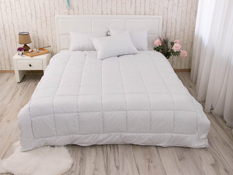Чудовий набір для комфортного сну. Набір складається з полегшеної силіконової ковдри та 2 подушок. Вироби виконані з якісної м'якої мікрофібри з тонкими сірими смужками. Наповнювач із силіконізованого поліефірного волокна практичний у використанні, не викликає алергічних реакцій, не поглинає вологу та запахи. Подушки оснащені зручною застібкою-блискавкою.