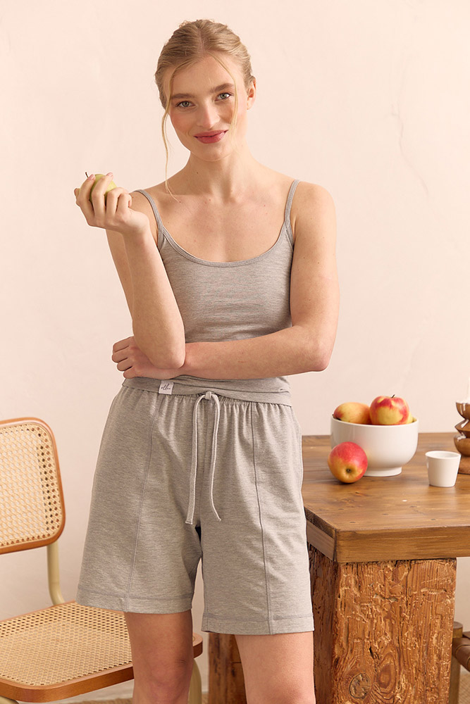 Жіночі домашні шорти. Ідеальний вибір для комфортного відпочинку та сну. Модель сірого кольору з бічними кишеньками, на поясі зручна гумка і шнур. М'яка і приємна до тіла бавовняна тканина відмінно пропускає повітря, забезпечує комфорт і свободу рухів.