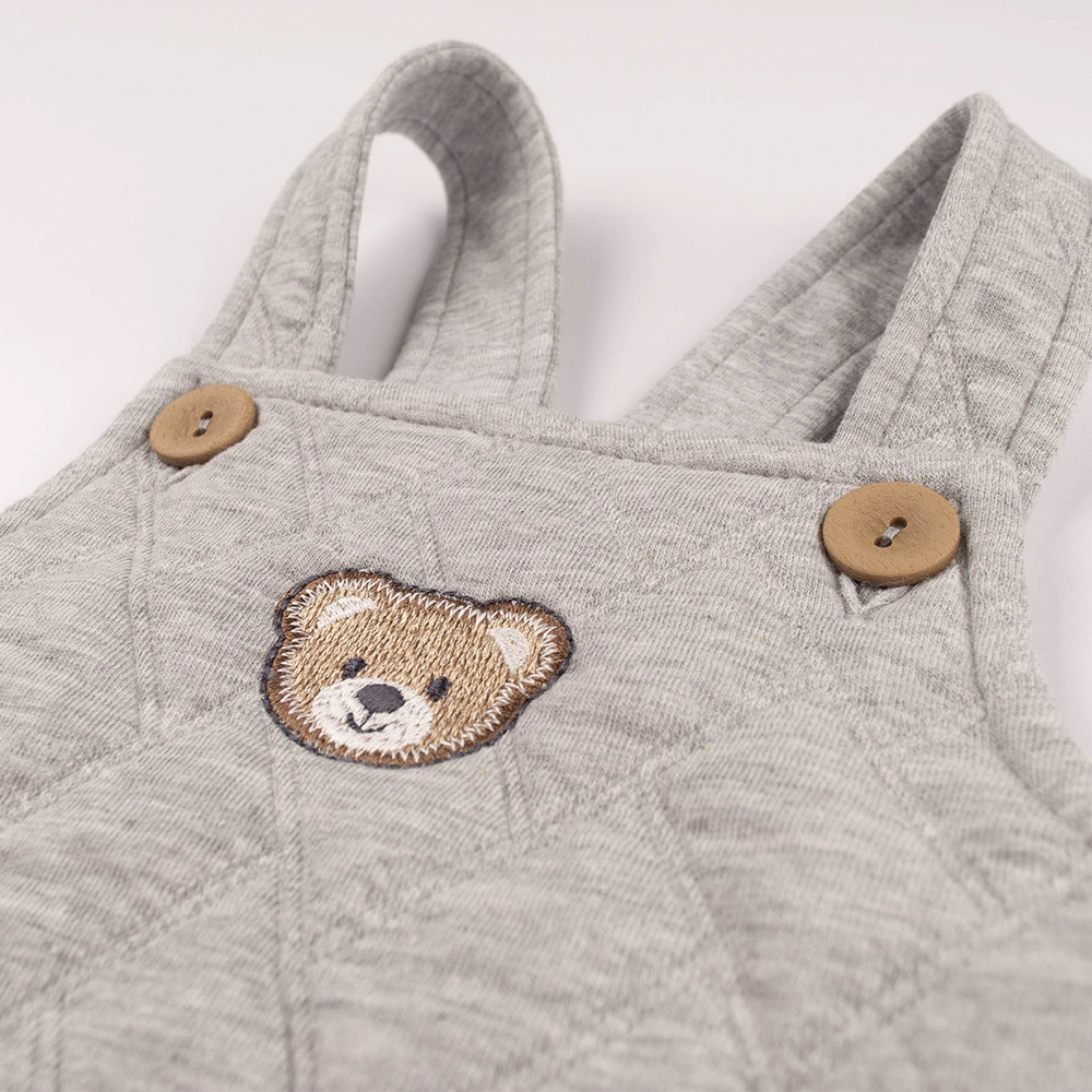 Сарафан сірого кольору з красивою вишивкою і двома накладними кишеньками. Сарафан виконаний зі стьобаної тканини капітоне, що складається з волокон бавовни та поліестеру. Матеріал приємний на дотик, дарує дитині затишок і комфорт, практичний у шкарпетці. Сарафан стане не тільки модним елементом дитячого гардероба, а й практичним одягом для повсякденних занять та ігор.