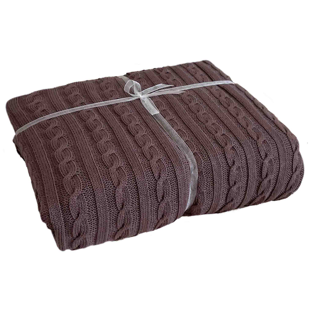 Стильний однотонний плед шоколадного кольору з натуральної бавовняної пряжі. Плед м'який і приємний на дотик, з рельєфним візерунком кісками. Виріб прикрасить інтер'єр, подарує вам затишок та комфорт під час відпочинку.