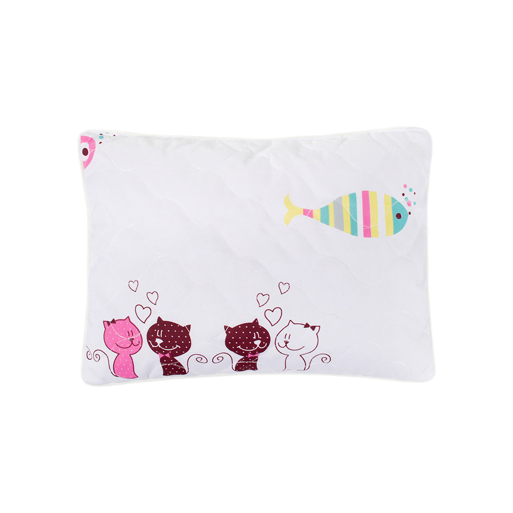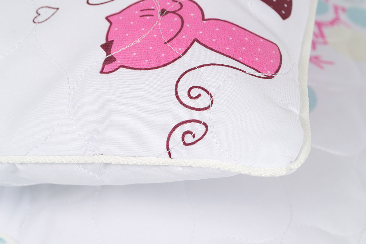 Стьобана подушка з наповнювачем із антиалергенного волокна. Чохол подушки виконаний з м'якої і приємної на дотик мікрофібри з симпатичним дитячим принтом. Наповнювач не викликає алергії, забезпечує дитині затишок і комфорт під час сну.