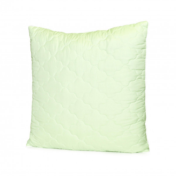 М'яка і зручна подушка з наповнювачем з повітряного ніжного волокна подарує вам комфорт під час сну. Чохол виробу виконаний з стьобаною якісної мікрофібри салатового кольору. Бамбукове волокно не викликає алергічних реакцій, добре зберігає форму, не вбирає запахи, придатне для прання.