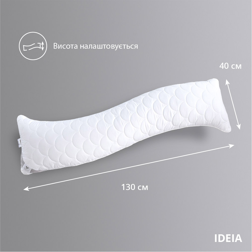 - Багатофункціональність. Розмір подушки дає змогу одночасно займати її та закидати на неї ноги під час сну на боці. Під час сидіння забезпечує надійну підтримку спині, ногам або шиї, залежно від того, яка позиція зручна вам.
