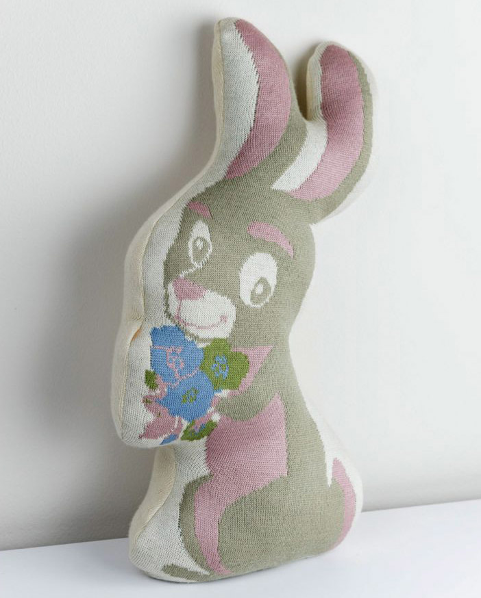 Подушка у вигляді симпатичного зайченяти з букетом квітів. Подушка м'яка та затишна, подарує комфортний та приємний відпочинок, а також посмішку та гарний настрій. Виріб може використовуватися як антистресова подушка-обіймашка або для декорування інтер'єру. Подушка обов'язково сподобається дітям, любителям тварин, а також тим, хто цінує милі та кумедні речі. Чохол подушки приємний на дотик, виготовлений з м'якої іспанської акрилової тканини. Як наповнювач використовується антиалергенне поліефірне волокно холофайбер.