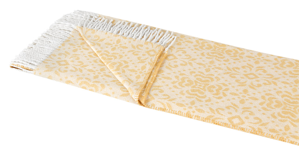 Акриловий плед ніжного бежевого кольору з вишуканим квітковим орнаментом і бахромою. Плед стане родзинкою інтер'єру, подарує вам комфортний відпочинок, привнесе в будинок неповторну атмосферу затишку і гармонії.