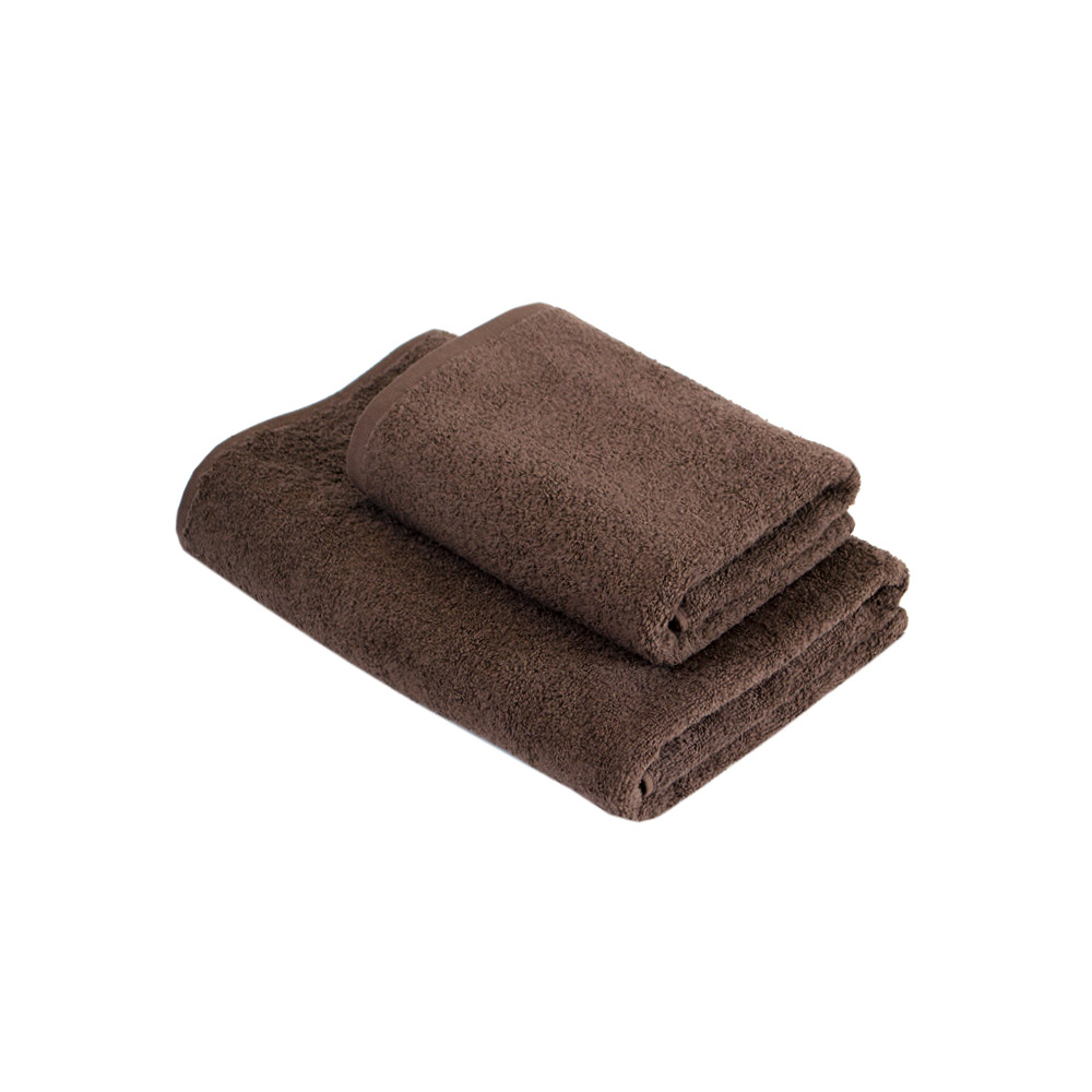Однотонний махровий рушник коричневого кольору. Рушник виконано з натуральної бавовняної махри з м'яким ворсом. Виріб приємний на дотик, відмінно вбирає вологу, швидко сохне, дарує відчуття затишку і комфорту.