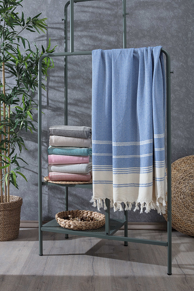 Рушник від турецької ТМ Arya для пляжу чи сауни. Вироби великого розміру, тонкі та компактні, не займають багато місця в сумці, відрізняються сучасним дизайном. Рушник також можна використовувати як парео або пляжний килимок. Вироби практичні в експлуатації, не вимагають особливого догляду, добре витримують прання, надовго зберігають привабливий вигляд.