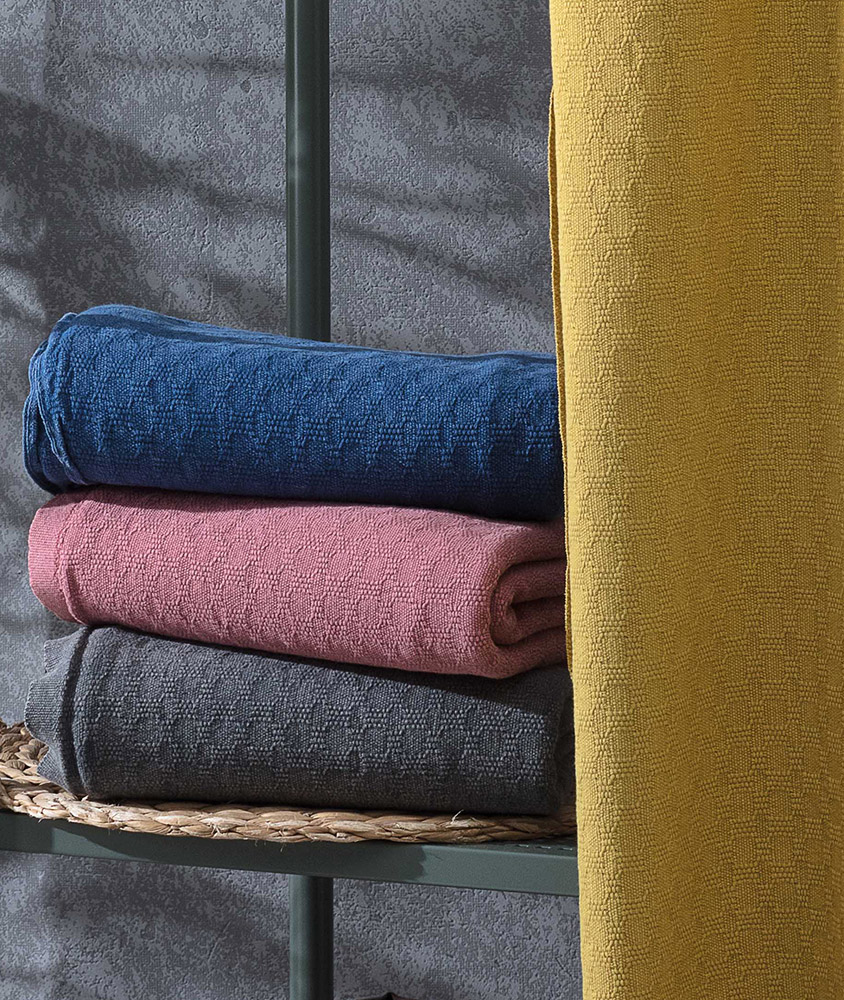 Натуральний бавовняний рушник для пляжного відпочинку або сауни. Рушник однотонний, синього кольору, з красивою рельєфною фактурою та бахромою. Натуральна бавовняна тканина приємна на дотик, легка, відмінно вбирає вологу і швидко сохне, дарує відчуття затишку та комфорту.