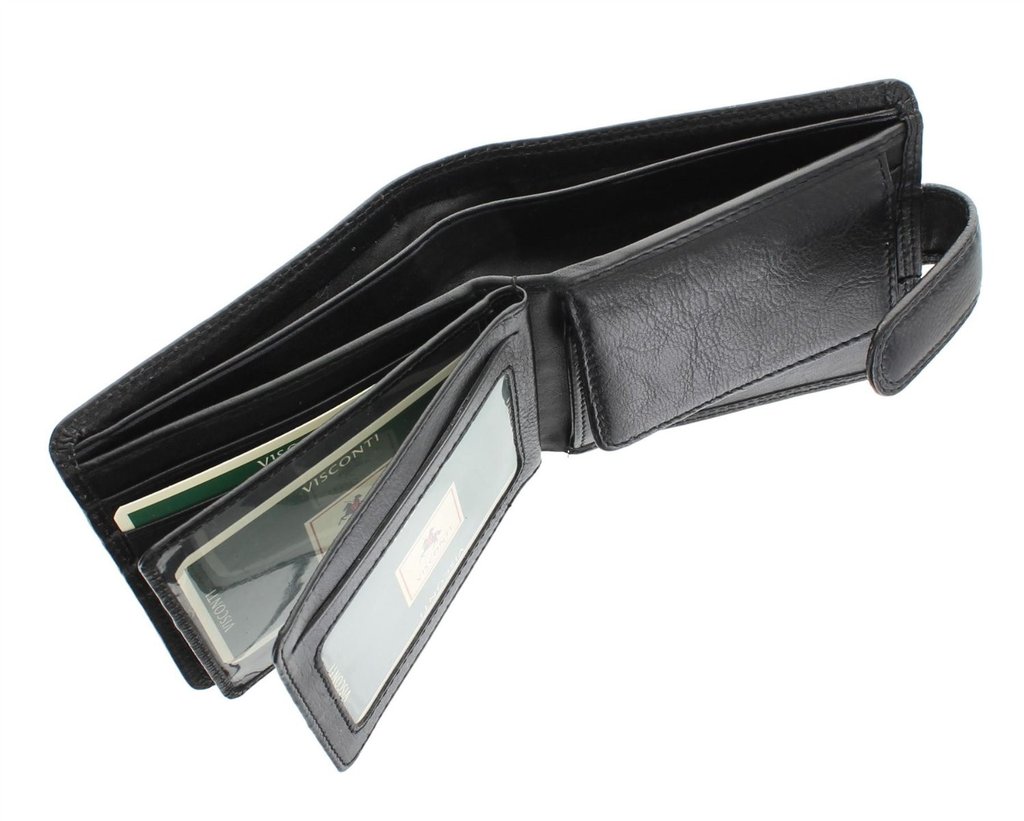 Чоловіче портмоне з натуральної шкіри Visconti HT-13 Strand black - класична акуратна модель, яка підійде практичному чоловікові. Висока якість матеріалу, максимальна кількість кишень і відділень, забезпечать зручну і надійну службу виробу. Гаманець закривається надійної кнопкою на клапані. Особливості моделі HT13 - Strand: