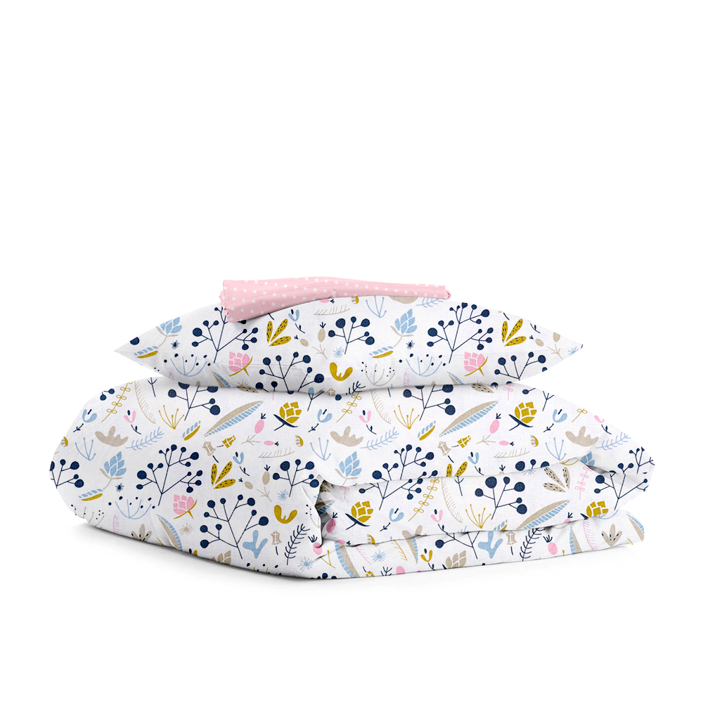 - Дитячий комплект: простирадло без резинки 110х160 см, підковдра 110х140 см, наволочка 40х60 см
