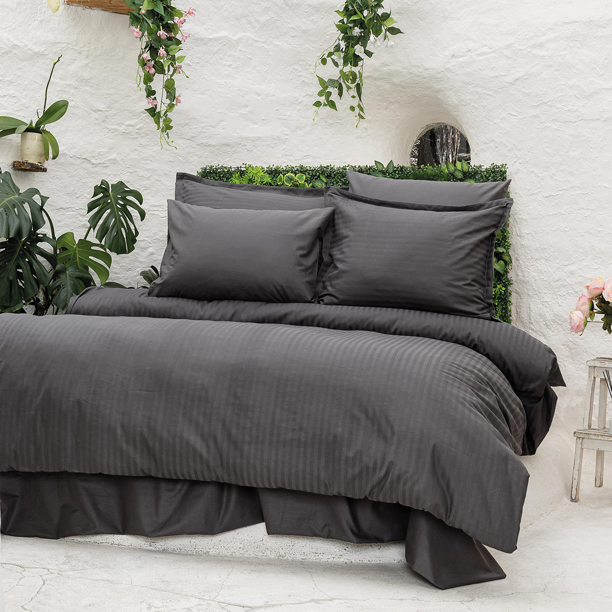 Постільна білизна Altinbasak Poplin Infinity Shadows поплін темно-сірий. Поплінова постільна білизна з жакардовими смужками стане ефектним і стильним акцентом в інтер'єрі. Поплін з жакардовим плетінням створює елегантну текстуру з вираженим візерунком у вигляді смуг, схожих на страйп сатин. Це надає білизні розкішного вигляду. Завдяки особливій техніці плетіння і використанню високоякісних ниток, білизна з попліну довго зберігає свою форму і колір, навіть після численних прань. Незважаючи на щільну структуру, матеріал залишається м'яким і приємним на дотик, забезпечуючи комфортний сон. Поплін добре пропускає повітря, що забезпечує оптимальний мікроклімат під час сну в будь-яку пору року. Білизна легко прасується і практично не мнеться, що робить її практичною у використанні.