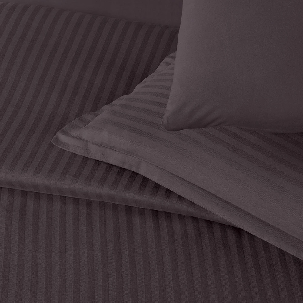 Однотонний комплект темно-лілового кольору з красивими рельєфними жакардовими смужками. Постільна білизна відмінно доповнить сучасний інтер'єр, стане стильним акцентом у спальні.