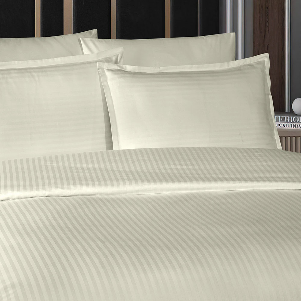 Однотонний комплект кремового кольору з красивими рельєфними жакардовими смужками. Постільна білизна відмінно доповнить сучасний інтер'єр, стане стильним акцентом в спальні.