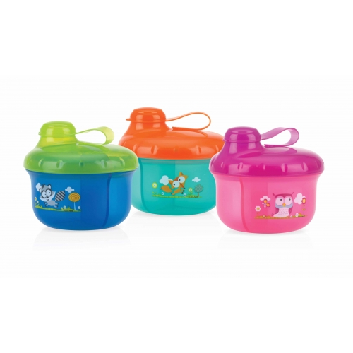 Диспенсер для суміші Nuby 5346 зелений складається з трьох секцій, які ідеально підходять для зберігання сухих молочних сумішей або каші. Яскравий зручний контейнер має отщелкивали ковпачок і зручну форму невеликого розміру. Гігієнічний, безпечний контейнер дозволить брати дитяче сухе харчування з собою в дорогу. Для годування дитини досить повернути носик на потрібну секцію, відкрити кришку, висипати суміш в пляшечку з кип'яченою водою і їжа для малюка готова.