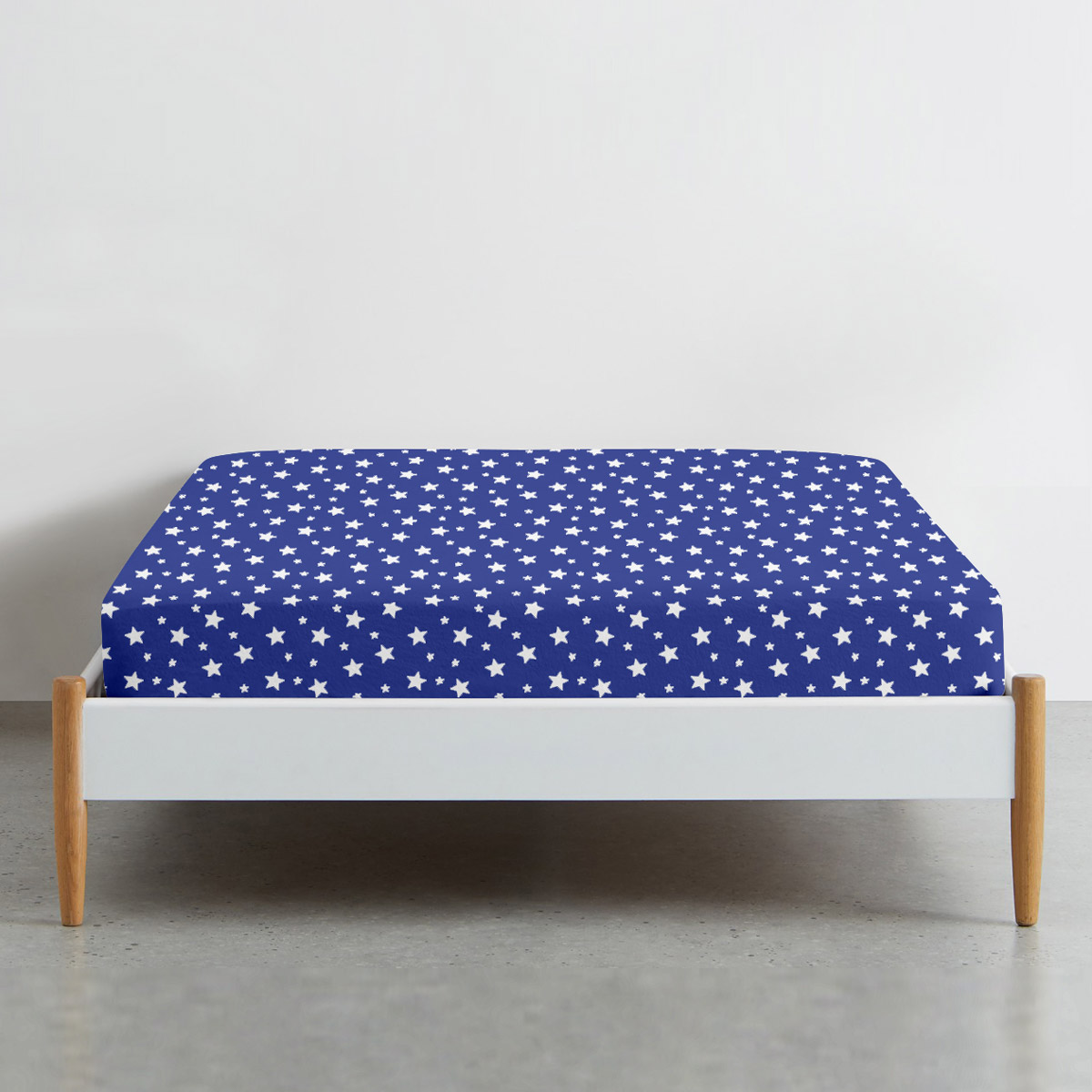 Дитяча простирадло на гумці Cosas StarBlue 120. Простирадло синього кольору, прикрашена великими білими зірками. На гумці. Зоряне небо тепер прямо в будинку. Постіль виготовлена з бавовни, вирощеного в Європі під високим контролем якості. Простирадло чудово дихає і не парить. Свій вид збереже навіть після 300 прань.
