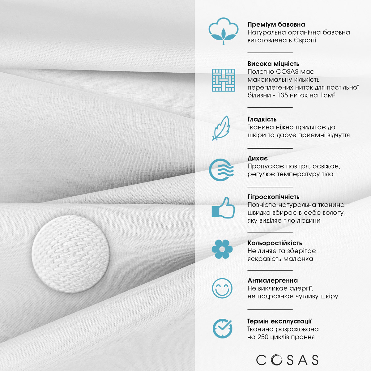 Склад: 100% органічний гіпоалергенний бавовна