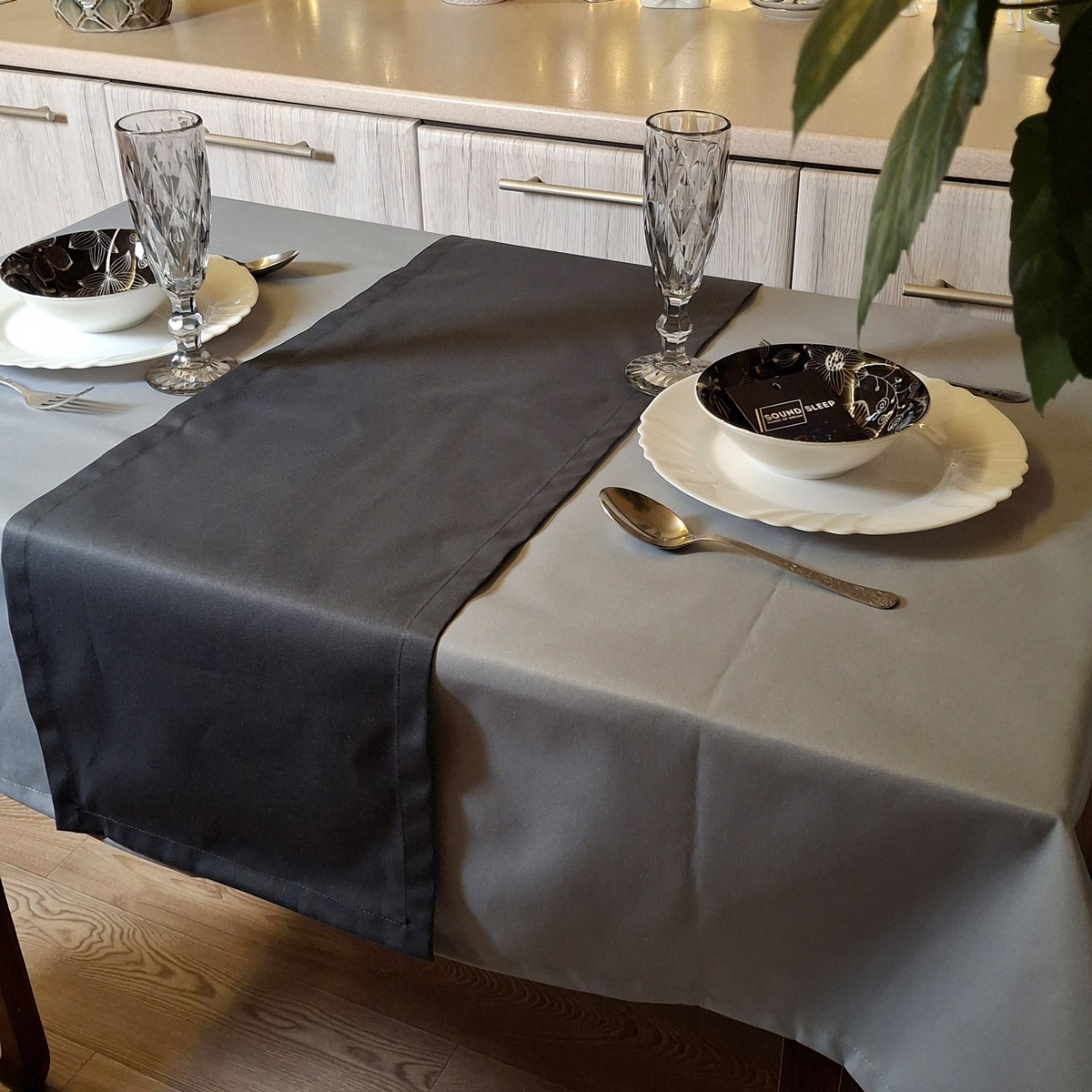 Ранер водостійкий SoundSleep Loisa темно-сірий - це елегантний, однотонний аксесуар, який додасть стилю до вашого сервірування. Тканина з тефлоновим просоченням не вбирає рідини і стійка до плям, що дозволяє раннеру довго зберігати свіжий вигляд. Ідеально підходить для їдальні у квартирі або заміському будинку, цей раннер гармонійно доповнить будь-який інтер'єр завдяки глибокому сірому відтінку і лаконічному дизайну.