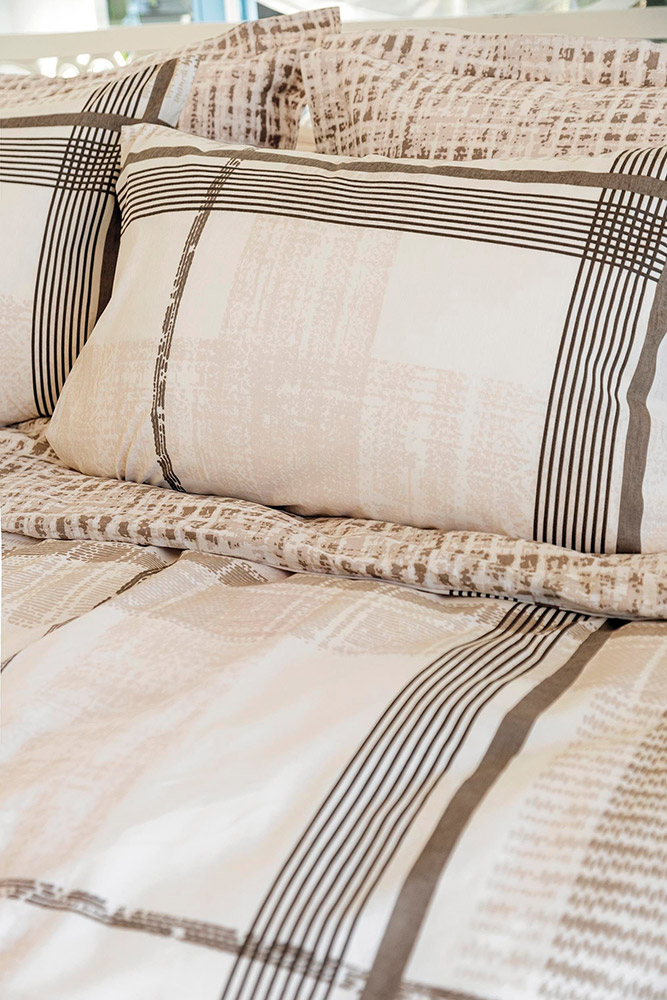 Постільна білизна з ранфорса - це ідеальне поєднання комфорту, якості та естетики. Комплект бежевих відтінків з принтом у клітинку, чудово доповнить інтер'єр і зробить спальню більш затишною. Якісна тканина з натуральної бавовни приємна на дотик, міцна і довговічна в експлуатації. Вона прекрасно пропускає повітря, гіпоалергенна, забезпечує комфортний і здоровий сон.