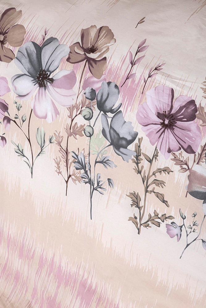 Постільна білизна з ранфорса - це ідеальне поєднання комфорту, якості та естетики. Комплект у лілово-бежевих відтінках з красивим квітковим принтом, створить у спальні атмосферу весни й гармонії. Якісна тканина з натуральної бавовни приємна на дотик, міцна й довговічна в експлуатації. Вона прекрасно пропускає повітря, гіпоалергенна, забезпечує комфортний і здоровий сон.