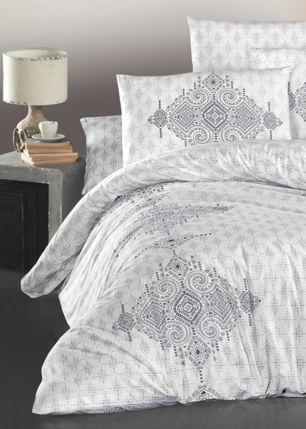Натуральний бавовняний комплект білого кольору з вишуканим орнаментом. Постільна білизна стане гарним акцентом в спальні і подарує комфорт під час сну.