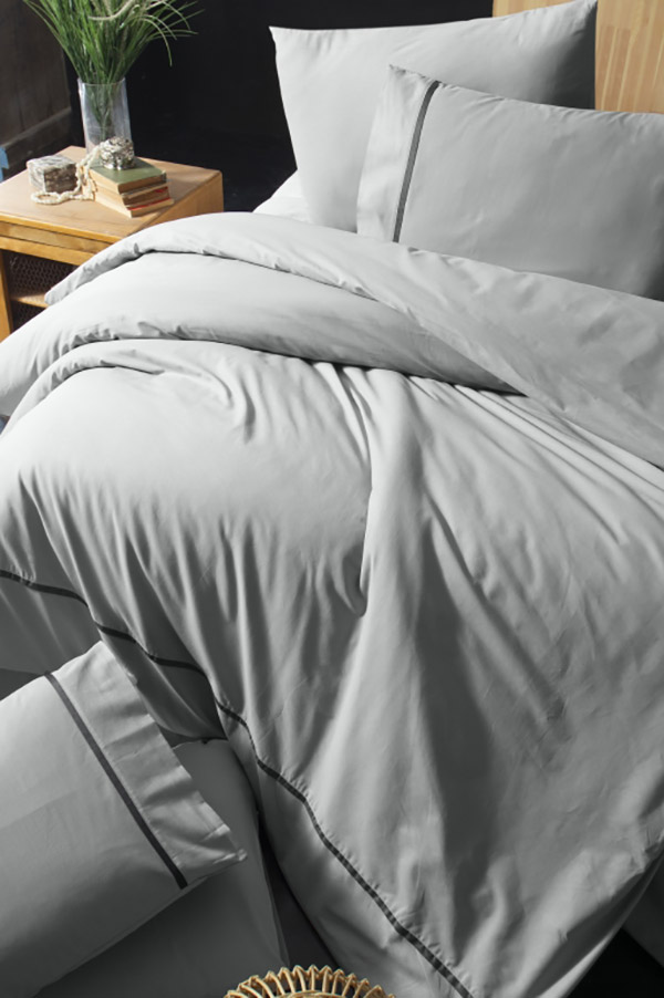 Стильний однотонний комплект сірого кольору з натуральної бавовняної тканини. Постільна білизна стане гарним акцентом в спальні і подарує максимально комфортний сон.