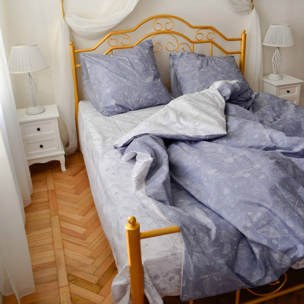 Постільна білизна сірого кольору з красивим рослинним принтом. Комплект наповнить інтер'єр затишком та гармонією. Якісна тканина з натуральної бавовни забезпечить комфортний та приємний сон.