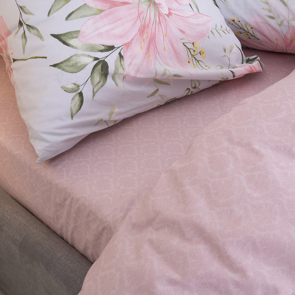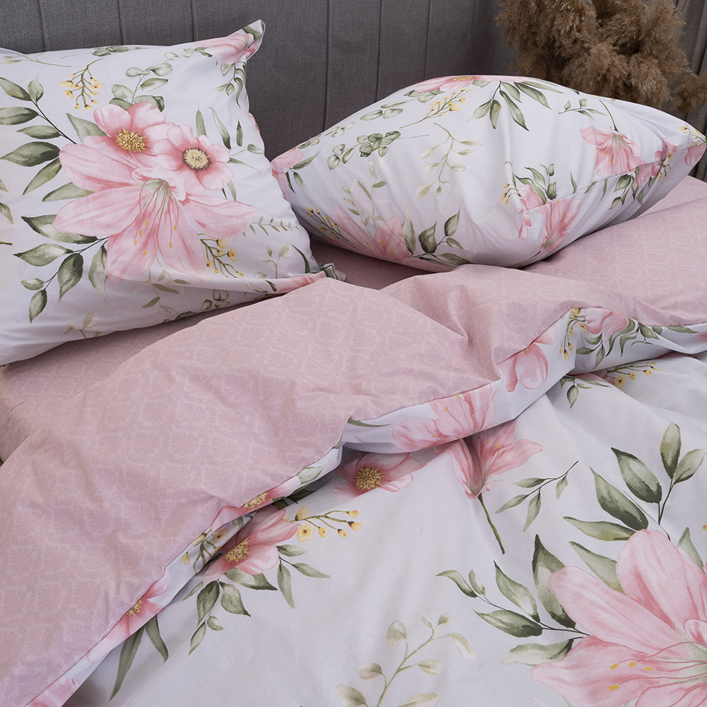Постільна білизна з ранфорса. Комплект у рожевій гамі з вишуканим квітковим принтом, зробить спальню більш затишною. Якісна тканина з натуральної бавовни забезпечить комфортний і приємний сон, прослужить довгий час, зберігши привабливий зовнішній вигляд.