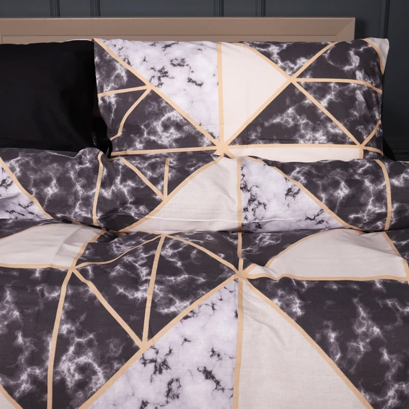 Якісна постільна білизна з ранфорса. Комплект у спокійній колірній гамі, з красивим геометричним принтом і з мармуровим візерунком, стане стильним акцентом у спальні. Натуральний бавовняний матеріал приємний на дотик, забезпечить максимально комфортний і здоровий сон. Комплект поставляється у фірмовій коробці, чудово підійде в якості подарунка для рідних і близьких.