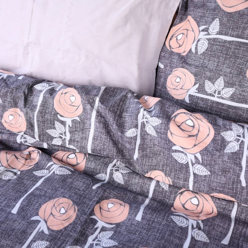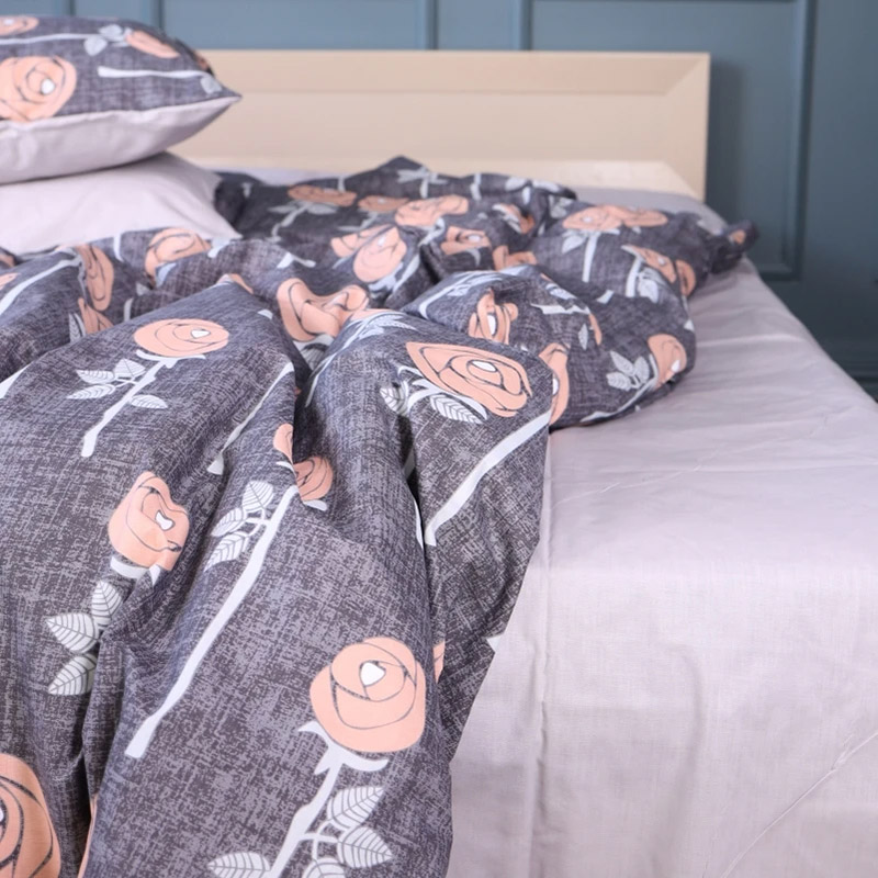Якісна постільна білизна з ранфорса. Комплект сірих відтінків з красивим квітковим принтом, зробить інтер'єр більш затишним. Натуральний бавовняний матеріал приємний на дотик, забезпечить максимально комфортний і здоровий сон. Комплект поставляється у фірмовій коробці, чудово підійде в якості подарунка для рідних і близьких.