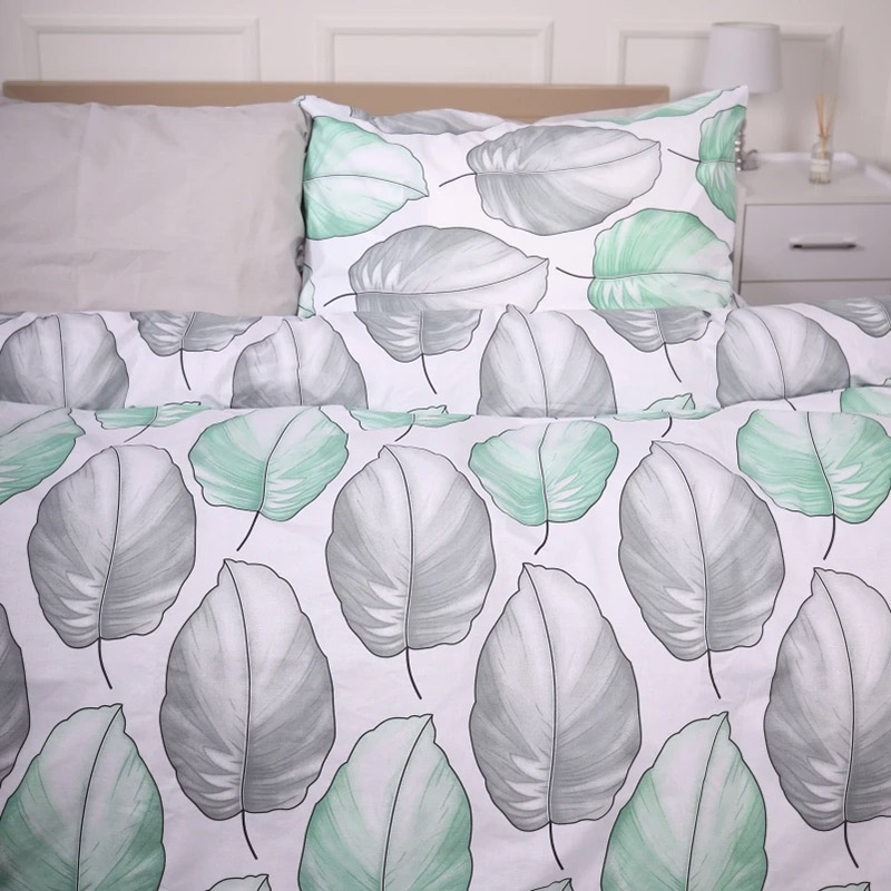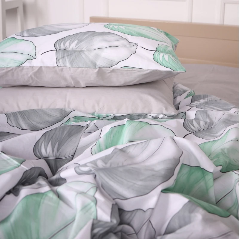 Якісна постільна білизна з ранфорса. Комплект у сіро-зеленій гамі з красивим рослинним принтом, наповнить інтер'єр затишком і гармонією. Натуральний бавовняний матеріал приємний на дотик, забезпечить максимально комфортний і здоровий сон. Комплект поставляється у фірмовій коробці, чудово підійде в якості подарунка для рідних і близьких.