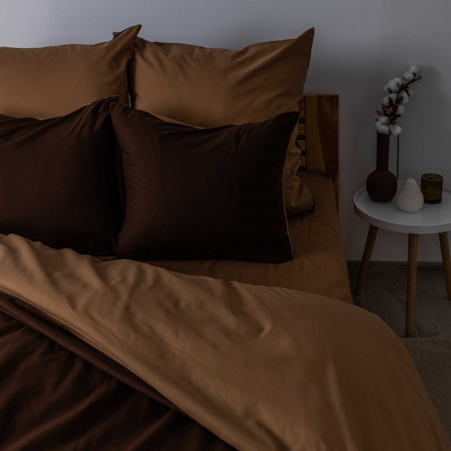 Постільна білизна Винний топаз ранфорс. Отримайте комфорт та затишок уві сні з комплектом постільної білизни з ранфорсу. Такий двоколірний комплект поєднує в собі м'якість, комфорт, витонченість та якість завдяки використанню натуральної тканини ранфорс, що має терморегулюючі властивості. Постільна білизна має сучасний дизайн, який підійде до будь-якого інтер'єру та створить неповторну атмосферу в спальні. Ранфорс не викликає алергії та може використовуватись для всіх членів сім'ї. Білизна залишається яскравою і новою навіть після багаторазових прань.