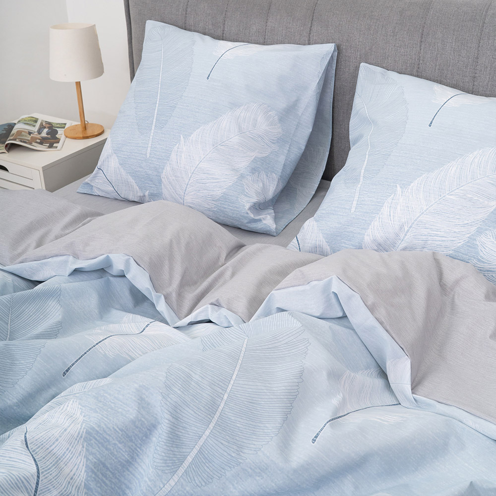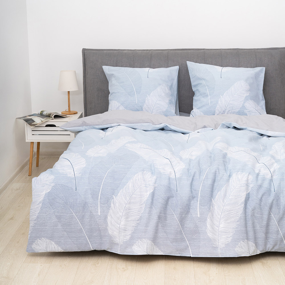 Постільна білизна з ранфорса. Комплект блакитного кольору з красивим ніжним принтом із пір'їнами, чудово доповнить інтер'єр. Якісна тканина з натуральної бавовни забезпечить комфортний і приємний сон, прослужить довгий час, зберігши привабливий зовнішній вигляд.