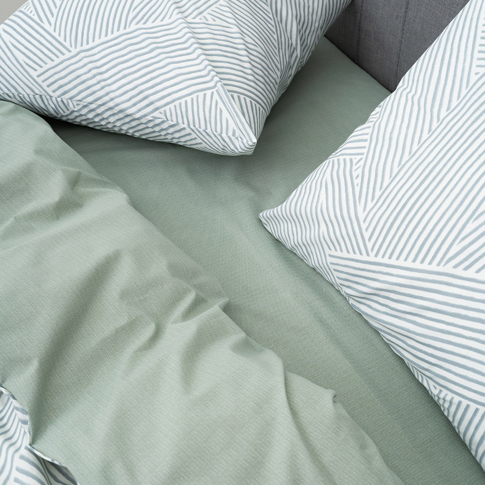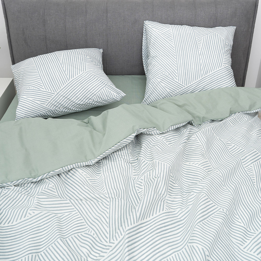 Постільна білизна з ранфорса. Комплект у біло-зеленій гамі з абстрактним стильним принтом, чудово доповнить сучасний інтер'єр. Якісна тканина з натуральної бавовни забезпечить комфортний і приємний сон, прослужить довгий час, зберігши привабливий зовнішній вигляд.