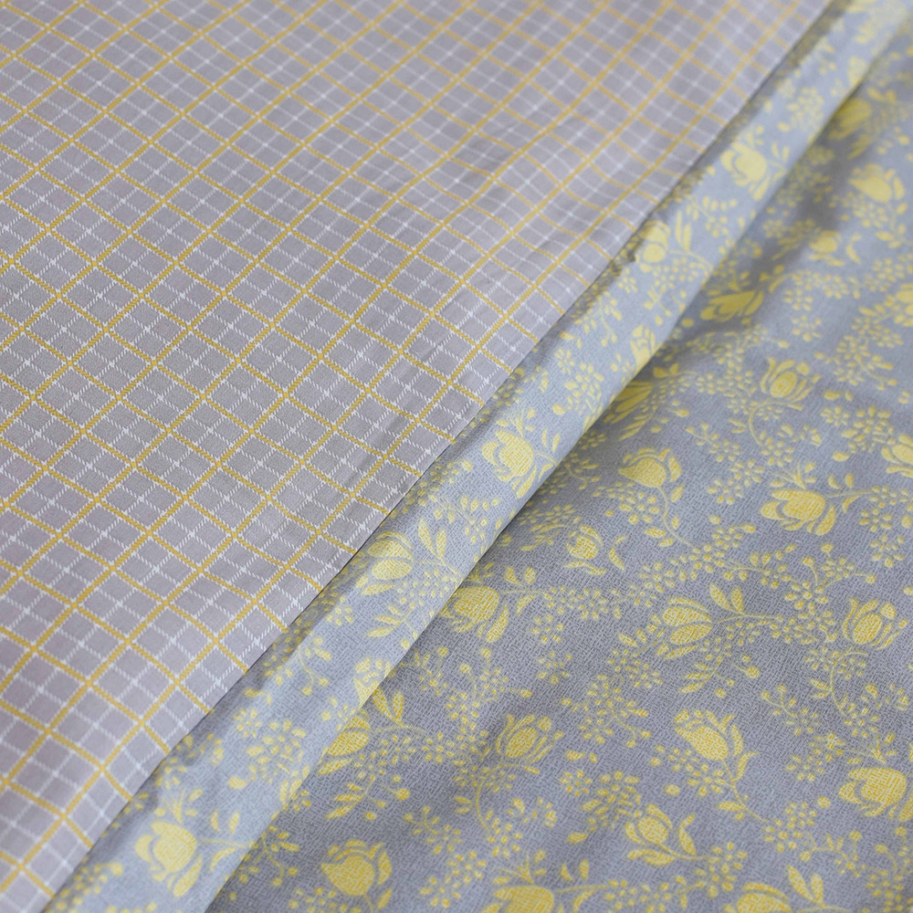 Постільна білизна з натуральної бавовняної тканини. Симпатичний квітковий малюнок чудово поєднується з дрібною клітинкою, робить спальню затишною і красивою. Якісний матеріал зі 100% бавовни забезпечує комфортний і приємний сон.