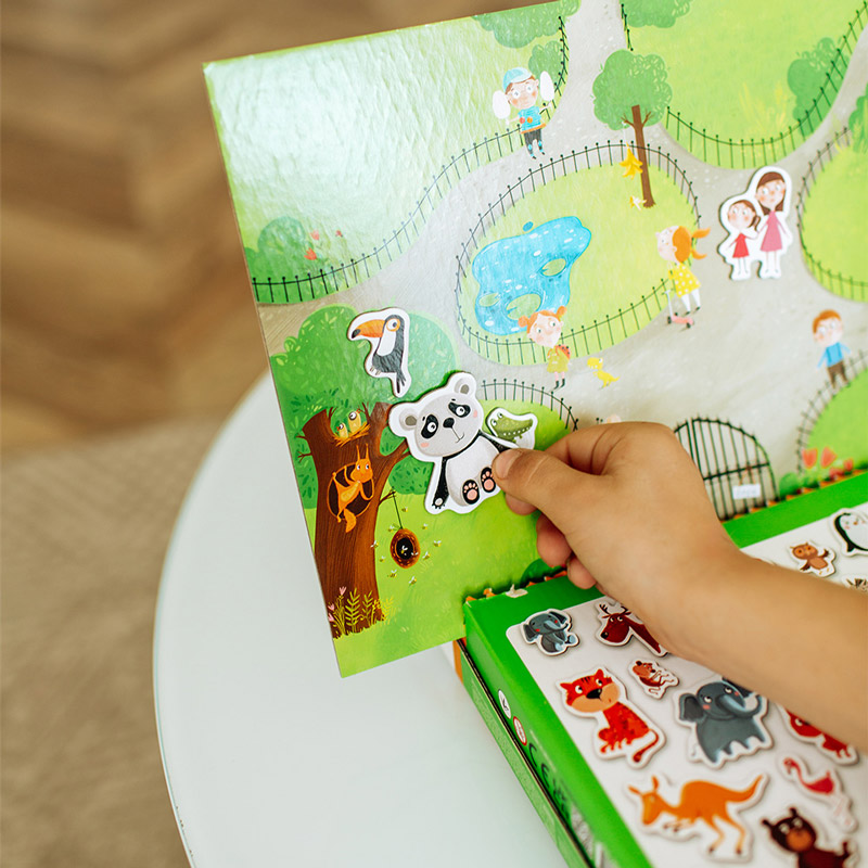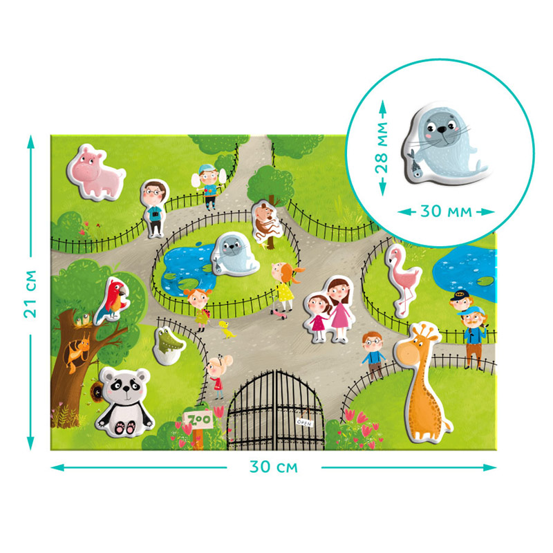 Сьогодні запрошуємо малюків до незвичайного зоопарку – магнітного! У новій розвиваючій грі від бренду Dodo на вас чекають магнітна планшетка, підставка та 35 магнітів з різноманітними тваринами. Діти із задоволенням розставлятимуть тварин на картинці, вивчатимуть їх назви та створюватимуть захоплюючі історії про життя у зоопарку. Як поводяться лев і слон, опинившись в одному вольєрі? Розбрат чи дружба?