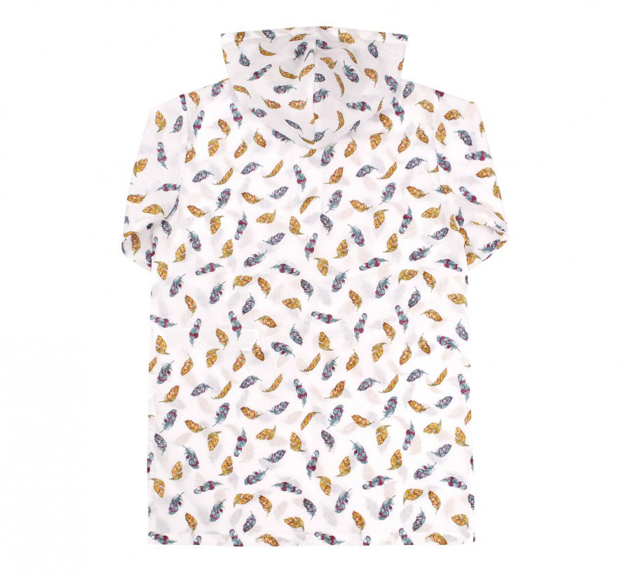 Сорочка білого кольору із симпатичним принтом. Модель з капюшоном і довгими рукавами, спереду на грудях застібається на ґудзик. Сорочка виконана з попліну. Бавовняний матеріал легкий, приємний, забезпечить дитині максимальний комфорт і затишок.