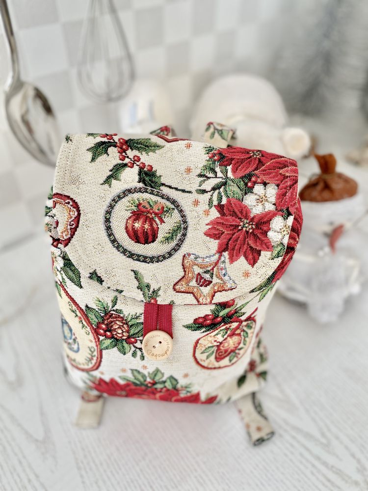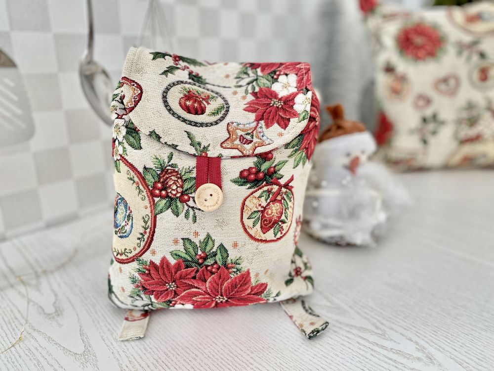 Рюкзак дитячий Limaso Nat-RD. Тканинний рюкзачок з гарним зимовим принтом подарує святковий настрій, стане чудовим подарунком для дитини до Нового року та Різдва. Рюкзак виконаний з якісного іспанського гобелену, застібається на гудзик, оснащений зручною петелькою для підвішування.