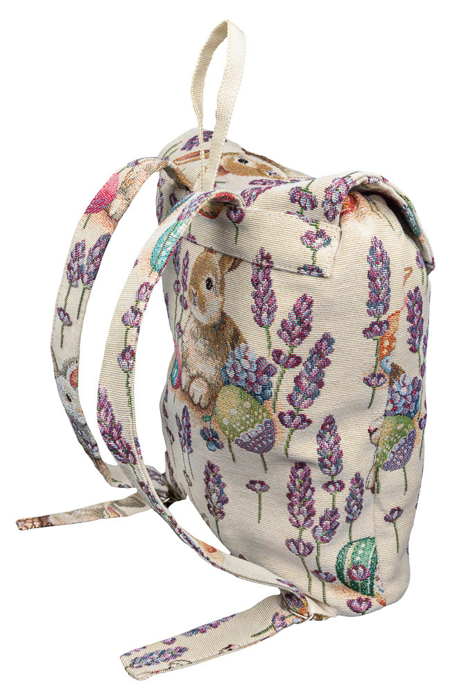 Тканинний рюкзачок із кроликами, квітами та писанками подарує святковий настрій, стане чудовим подарунком для дитини до Великодня. Рюкзак виконаний з якісного іспанського гобелена, застібається на гудзик, оснащений зручною петелькою для підвішування.